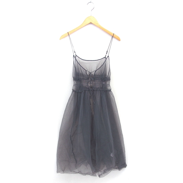 【中古】ローリーズファーム キャミワンピ チュール ロング シースルー シアー 後ろ結び ノースリーブ F グレー /TT