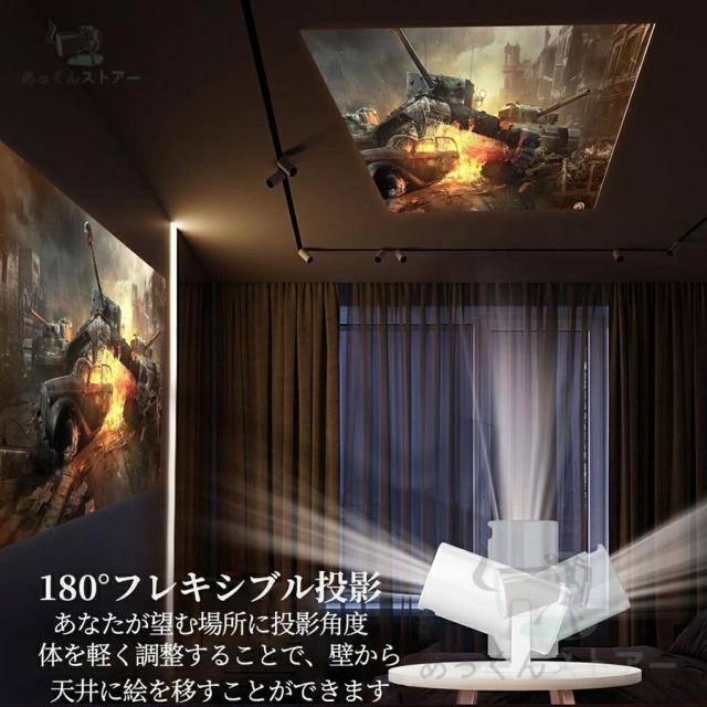 プロジェクター 天井投影 小型 家庭用 Android TV 11.0 5G wi-fi 6 対応 天井 ホームシアター 子供 HDMIケーブル?リモコン付属 一人暮らし ホームシアター