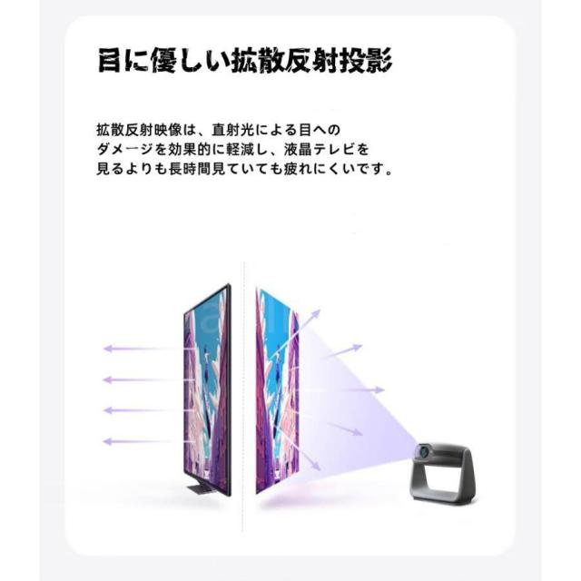 【短距離投影&自動台形補正】自動台形補正技術を採用して、横置きでも斜め置きでも、垂直方向の自動台形補正機能により、傾いた画像を自動的に補正し;マニュアルフォーカステクノロジーを搭載し、わずか数秒で完璧な画像が得られます短距離投影も備えており、投影距離は1.2?4メートル、40?180インチの大型スクリーンに対応している【超高速2.4G+5G・Bluetooth5.2】プロジェクターは最新2.4Gまたは超高速5G WiFi接続を搭載し、ケーブル不要、wifi経由でIOS、AndroidおよびWindowsデバイスにすばやく接続でき、ワイヤレス投影模式に入ります。2.4G+5Gの周波数帯を同時利用でき、遅延が 60% 削減されて、安定した信号と高速伝送速度を実現! Wi-Fi環境が無くても、プロジェクターはUSBケーブル/HDMIアダプターでの有線接続もできます。操作が簡単で、接続が速いです。Bluetooth5.2を搭載し、ワイヤレスでご愛用なBluetoothヘッドホンまたはスピーカーにも瞬時的に接続できます。高音質HIFIスピーカ—も内蔵され、外部スピーカーを用意する必要なく、立体的で臨場感に満ちた音場を忠実に再現し、お家で気楽に映画雰囲気を味わえる!【低ノイズ&マルチデバイス接続】ノイズレベルは_25dBで、プレミアム放熱システムにより、静かな映画鑑賞環境を保証します。このスマートムービープロジェクターはHDMI、USB、オーディオポートを備えており、ノートパソコン、テレビスティック、USBディスクなどと互換性があります。私たちの品質へのこだわりは比類のないものであり、無償交換や一流のカスタマーサポートを提供しています
