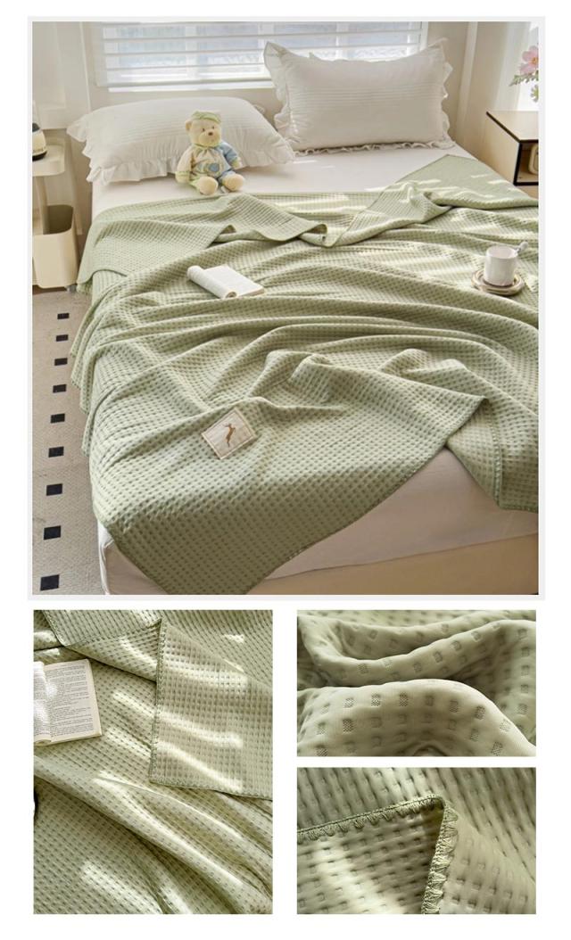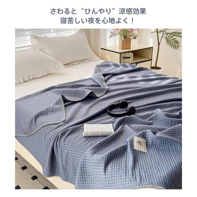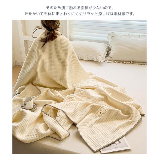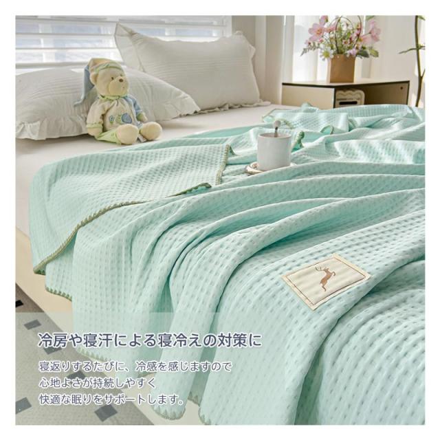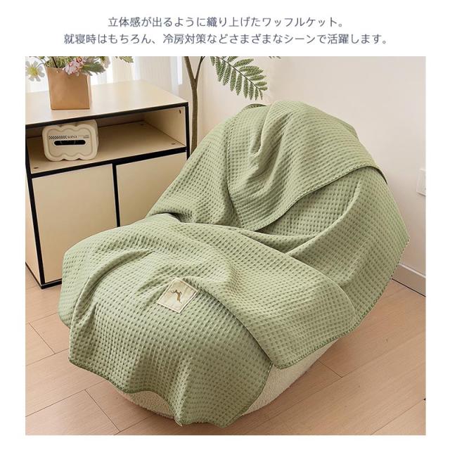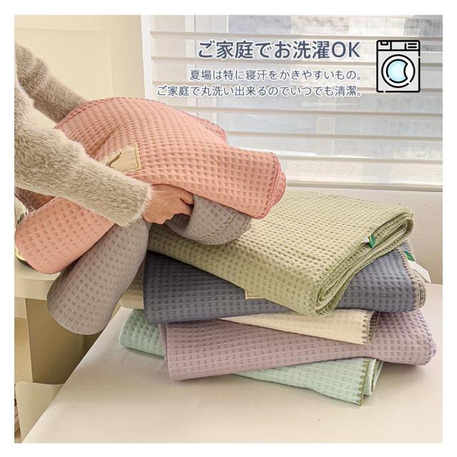 ワッフルケット タオルケット くしゅくし 冷感 じっくり織り上げたワッフルケット ブランケット シングル 肌に優しい 通気性良い 肩掛け 肌掛け お昼寝 冷房対策 春 夏用 150×200cm