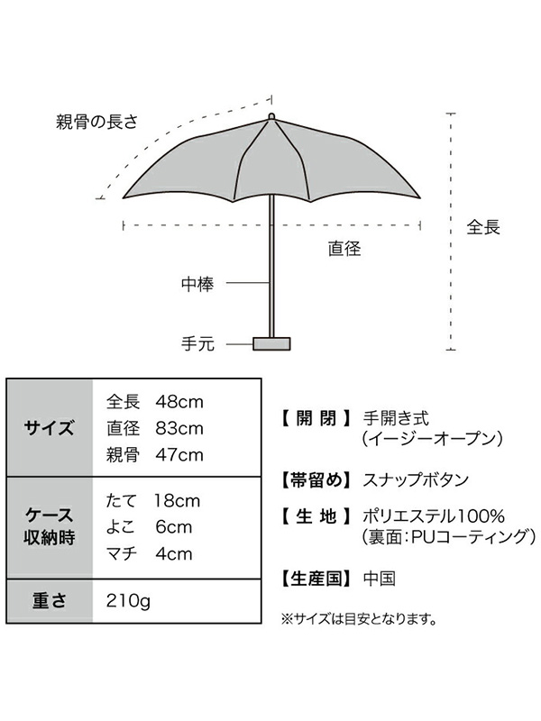 サイズ(cm)/全長/直径/親骨/重量(g)