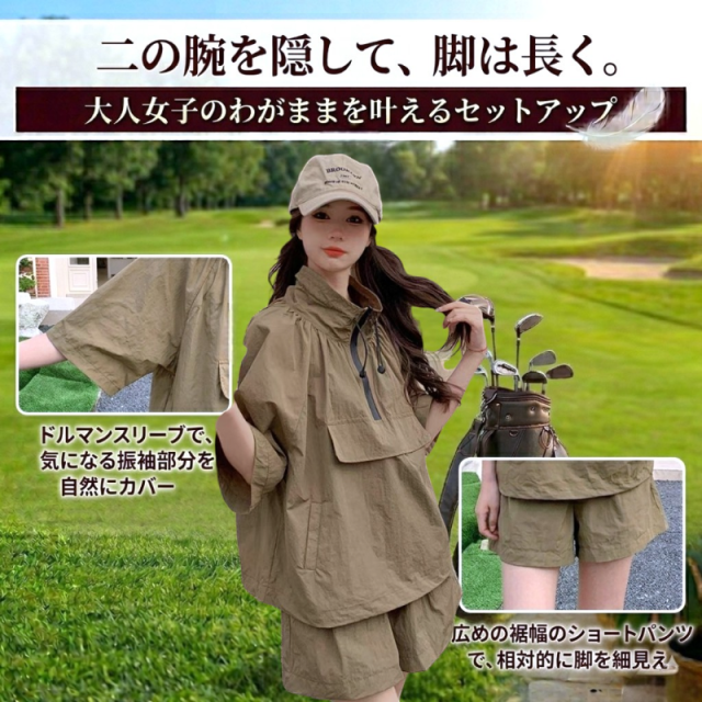 ゴルフウェア レディース セットアップ 上下セット 半袖 ハーフジップ プルオーバー ショートパンツ UVカット 紫外線対策 速乾 ドライ 防風 体型カバー ドルマンスリーブ 二の腕カバー 韓国 ファッション おしゃれ かわいい 夏 春夏 アーバンゴルフ 大きいサイズ M L XL