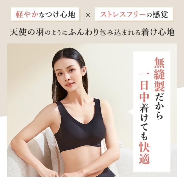 天使が舞い降りてきた!羽根のような軽やかなつけ心地と360°縫い目が無いノーブラ感覚は、一日中着ていてもストレスフリー