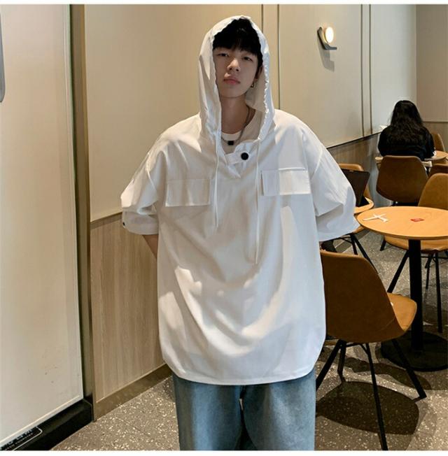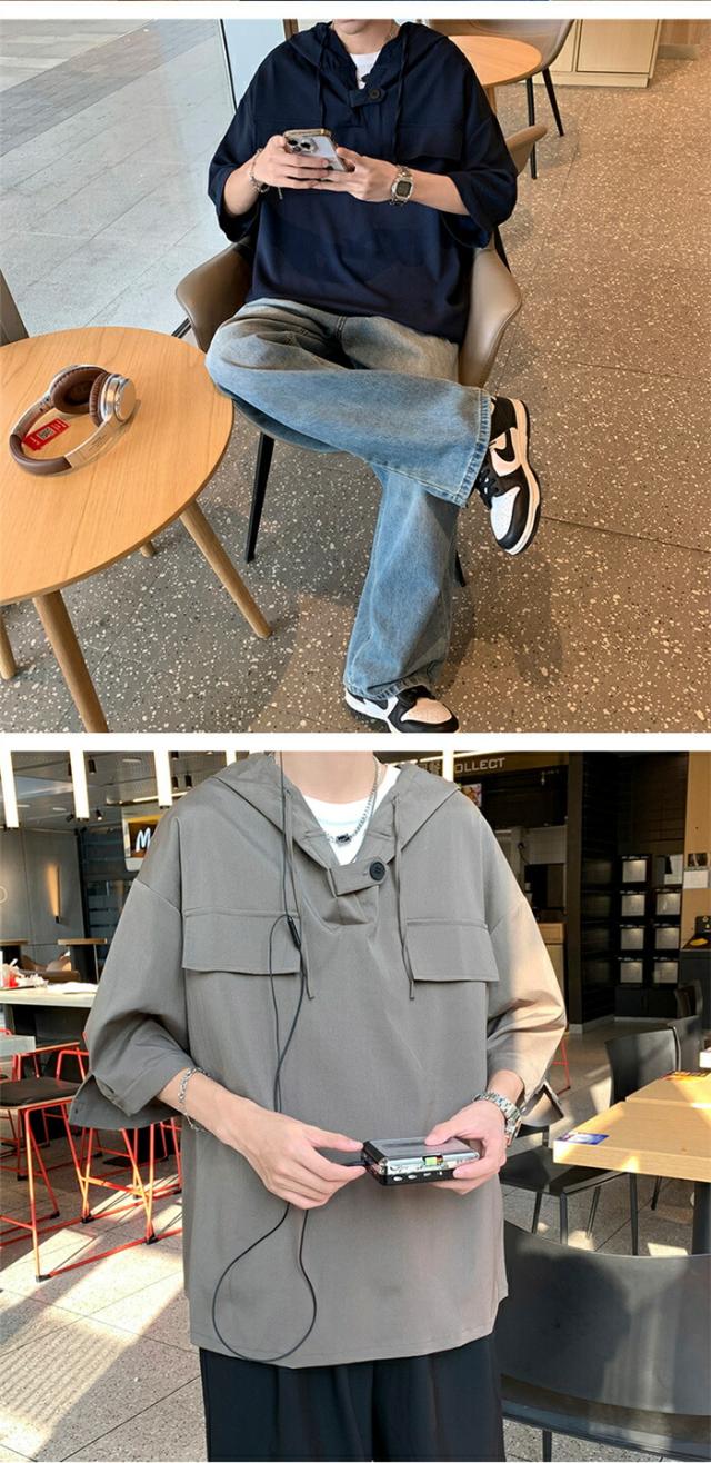 パーカー メンズ 七分袖 春夏 無地 薄手プルオーバー おしゃれ フード付き ゆったり 大きいサイズ 黒 白 グレー ネイビー M-3XL