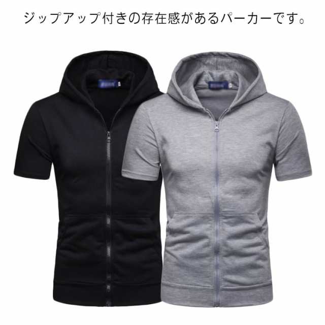 ジップアップ 夏 おしゃれ パーカー スポーツ シャツ 半袖パーカー カジュアル フード付き メンズ パーカ 薄手 大きいサイズ ストレッチ