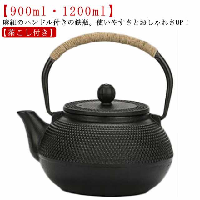 鉄瓶 鉄びん 直火 ih対応 ih 900ml 1200ml 大容量 急須 ドット アラレ紋 おしゃれ 鉄製 やかん ケトル ヤカン 茶こし付き 黒焼付 鉄分補給 コーヒー お湯 茶道具 鉄ビン 茶瓶 インテリア 鉄器 お土産 贈り物 プレゼント 鉄やかん 鉄ケトル 鉄急須