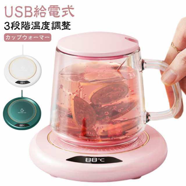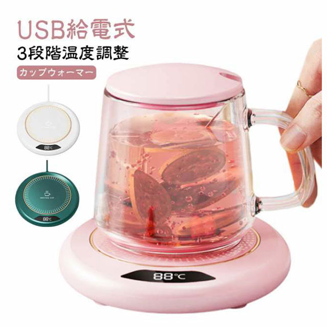 卓上カップウォーマー 保温コースター 3段階温度調整 コーヒーウォーマー USB給電式 8時間で自動電源オフ 忘れ防止 加熱コースター マグカップウォーマー 保温器 コーヒー/牛乳/お茶加熱 カップ保温器 加熱プレート 可愛い