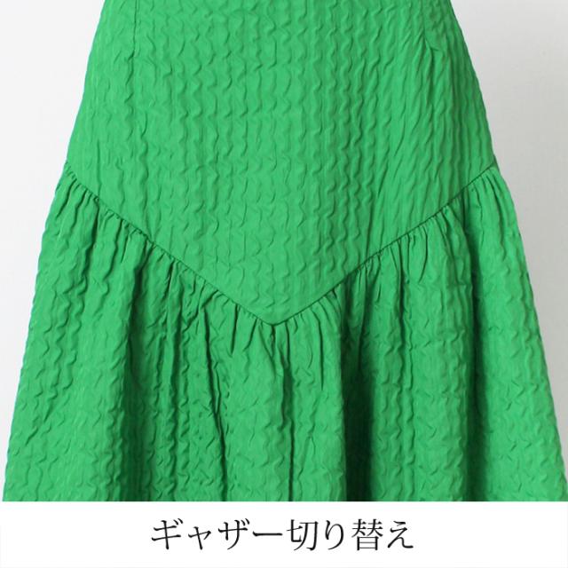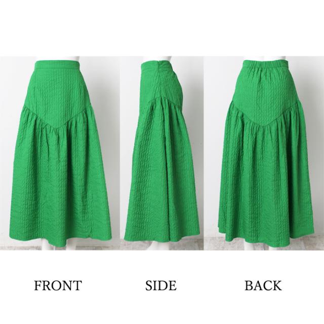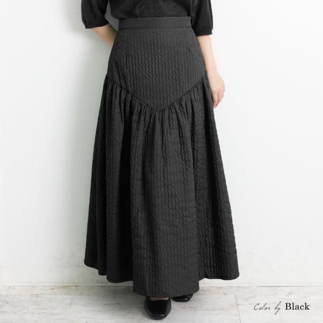 切り替えギャザーがポイントのロングスカートです。