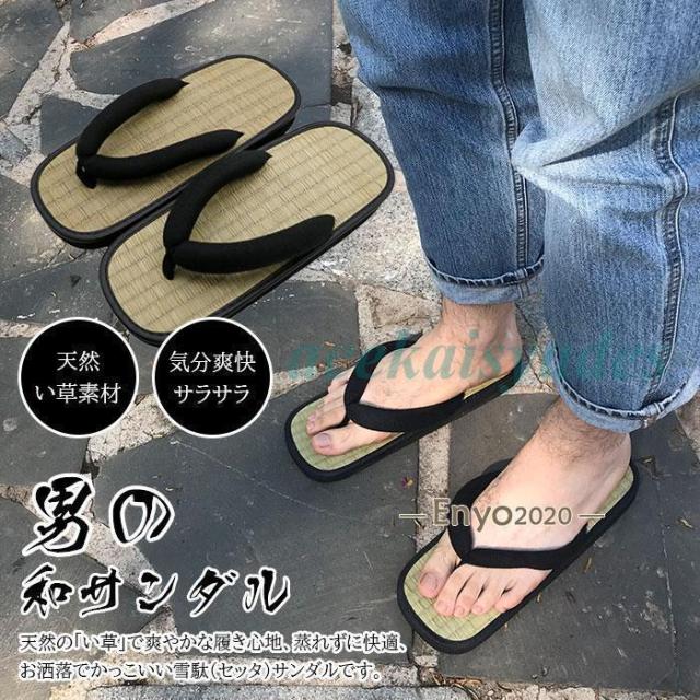 天然い草素材 気分爽快 サラサラ 鼻緒は痛くない 超軽量 サンダル メンズ 草履 雪駄 裸足で最適 男の和サンダル 和を履く男は格好良い 男女兼用