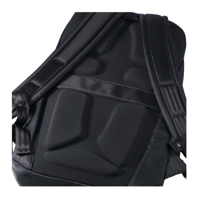 ビジネスシーンにもマッチするBLACK x GREYのロゴネームは本企画用にオリジナルデザインとなります。PCスリーブに加え、小物の収納に便利なインナーポケットも充実。背面にはEVA素材を採用し、バックパックと背中の間に空気が流れる空間ができ、長時間背負っても快適です。キャリーケースにセットできるスマートスリーブ仕様。