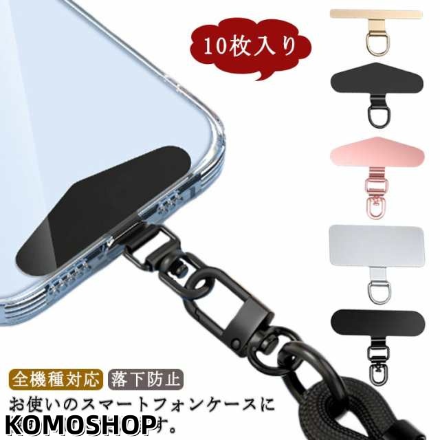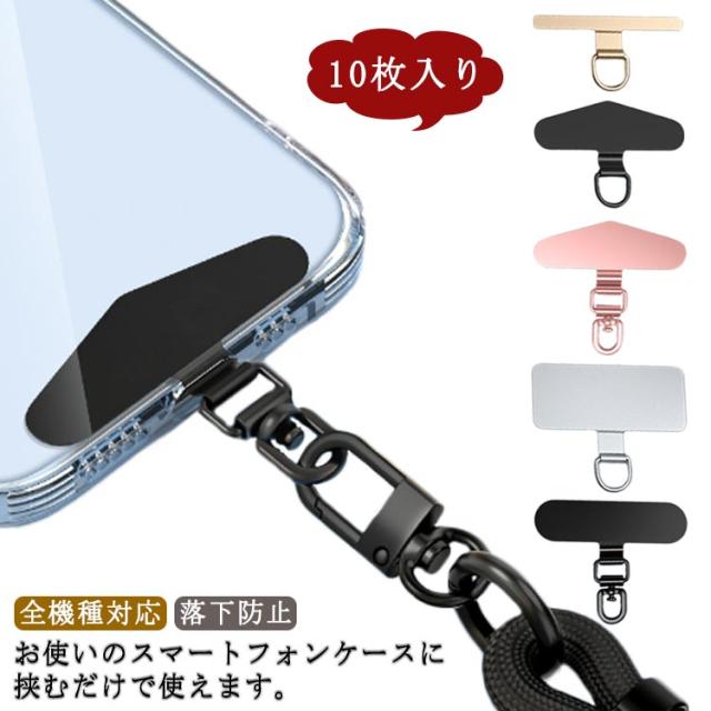 ステンレス製 スマホホルダー ストラップホルダー 全機種対応 ホルダー ショルダーストラップ 10枚入り 金属製タグパッチ スマホ ストラップホルダー 携帯ストラップ 薄型 iPhone android 全機種対応 落下防止 肩掛け 斜めがけ 首掛け 手ぶら 金属 ホルダー 単品 おしゃれ