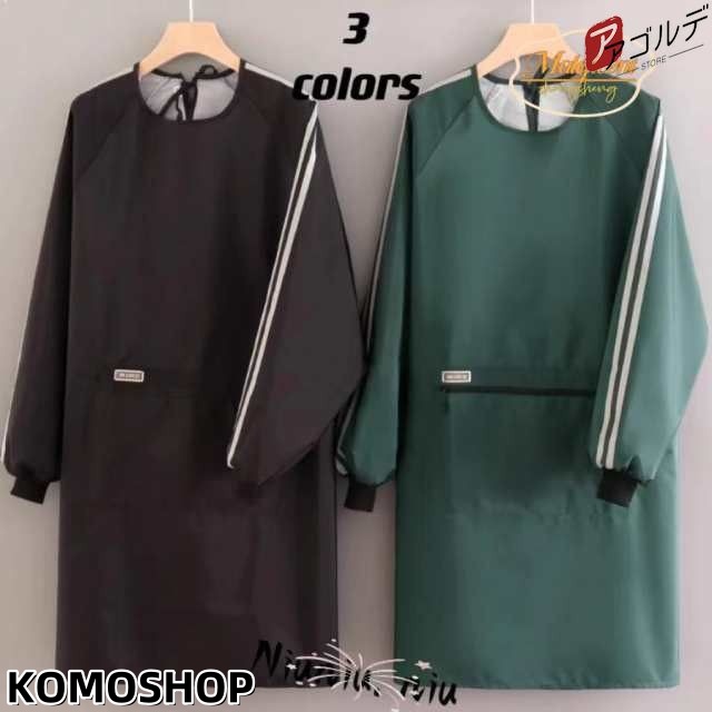 エプロン 男性 女性 割烹着 部屋着 お尻までカバー 割ぽう着 かっぽうぎ 長袖 作業用 キッチン 家事 料理 汚れ防止 男女兼用