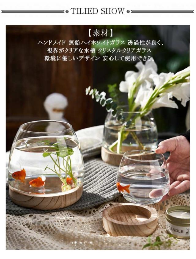 金魚鉢 小さな丸い透明なガラス花瓶 おしゃれ メダカ 水槽 小さな水槽 容器 XL 金魚 ミニ水槽 ガラス金魚鉢 おしゃれ 金魚鉢 金魚水槽 木製ベース付きデスクトップ水槽 観賞植物ホルダー 水耕植物花瓶 おしゃれ 小シンク 鉢 ガラス 室内花瓶 創作卓上金魚鉢