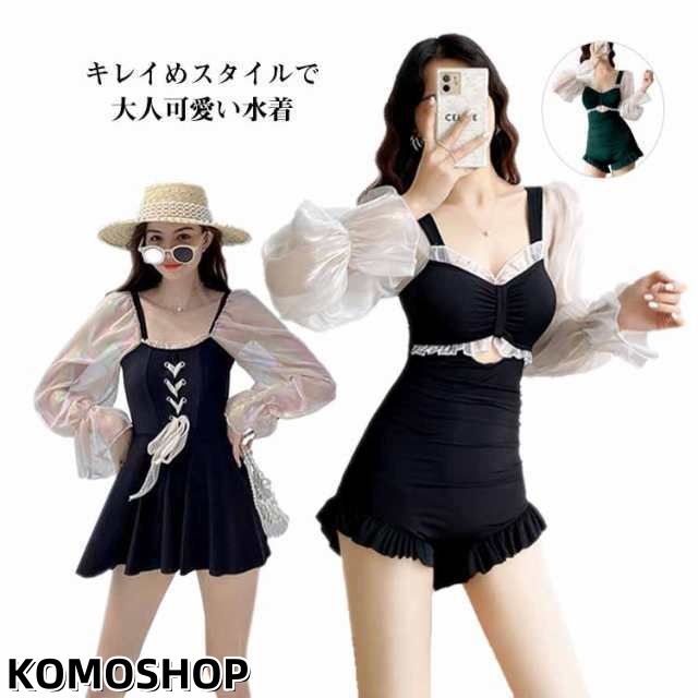 水着 レディース 体型カバー レディース 長袖 UVカット ビスチェ ワンピース 背中見せ おしゃれ 可愛い ママ ミセ
