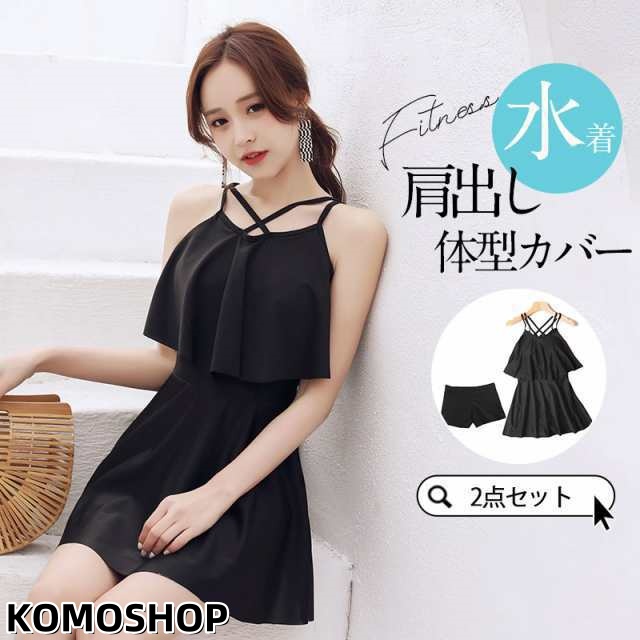 水着 レディース ワンピース 2点セット ショートパンツ オールインワン 体型カバー おしゃれ かわいい 40代 50代 肩出し