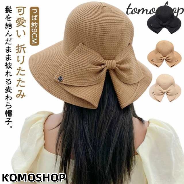 送料無料 つば広 ハット 麦わら帽子 折りたたみ 夏春 レディース 髪を結んだまま 帽子 女優帽 リゾートハット つば広ハット UVケア 麦わら ストローハット スリットポニーストローハット バックリボン 可愛い