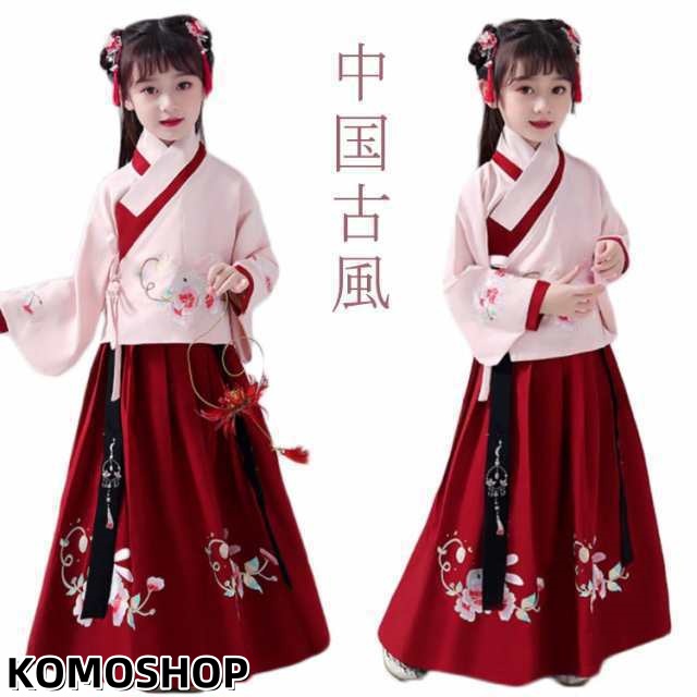 子供 漢服 セットアップ 可愛い チャイナドレス チャイナ服 子ども服 中国古風 ハロウィン 中華 コスチューム クリスマス コスプレ 衣装