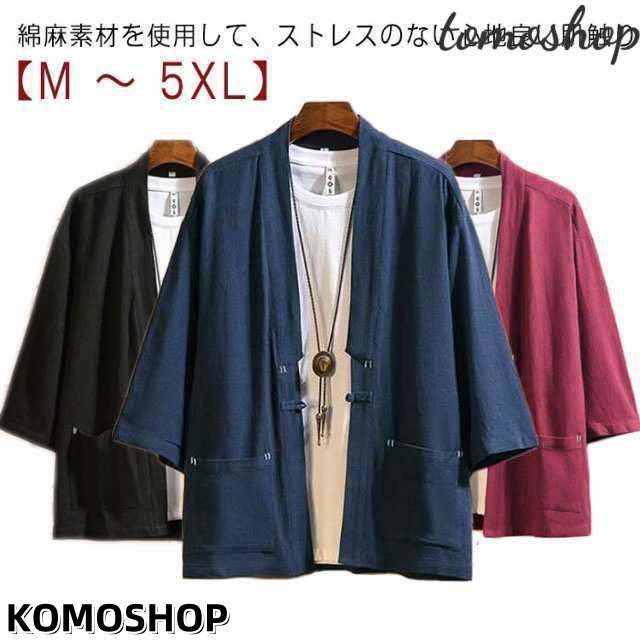 作務衣 半袖 メンズ 甚平 五分袖 七分袖 男性用 羽織 メンズ 法被 春 夏 祭り シャツ 和風 甚平 男性用 作務衣 半被 半纏 大きいサイズ M L XL 2XL 3XL 4XL 5XL カジュアル 和服 着物 長袖 中国 麻 おしゃれ トップス 送料無料
