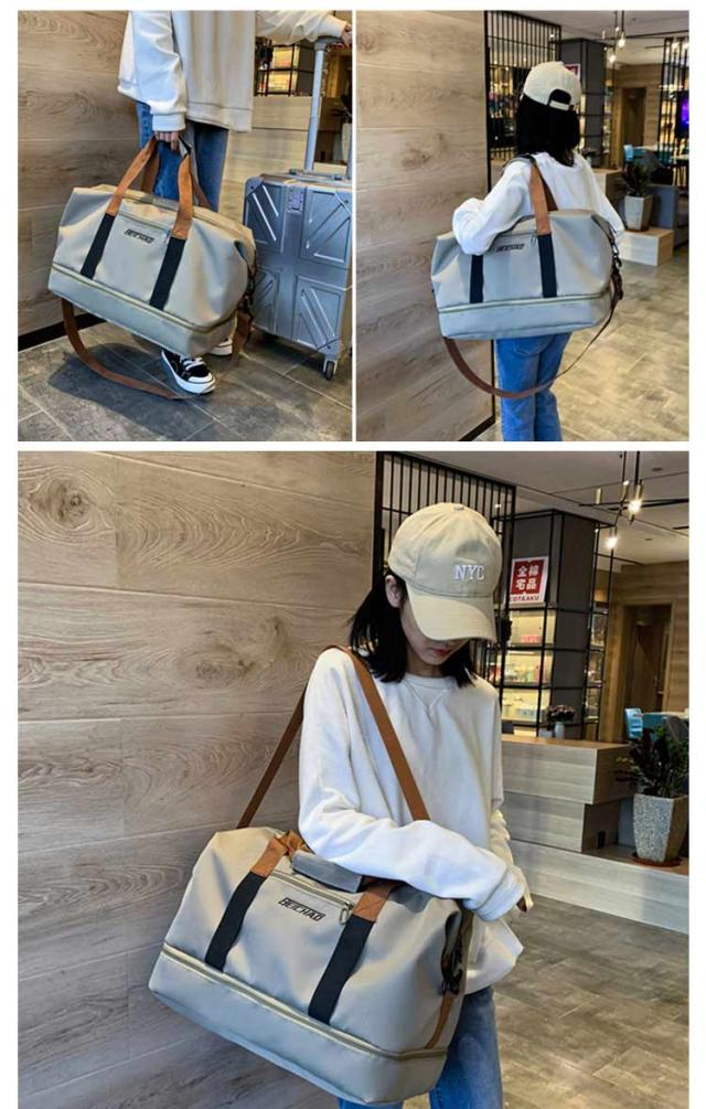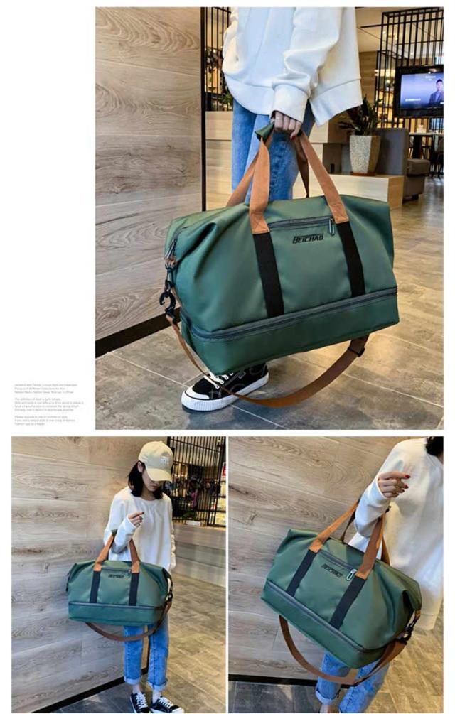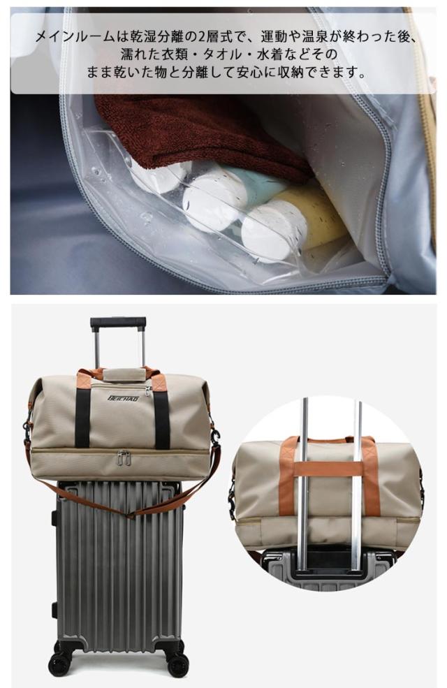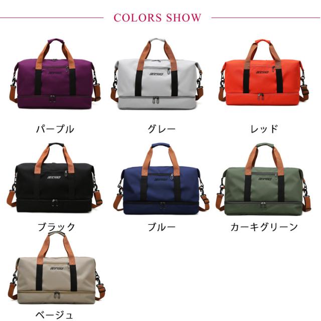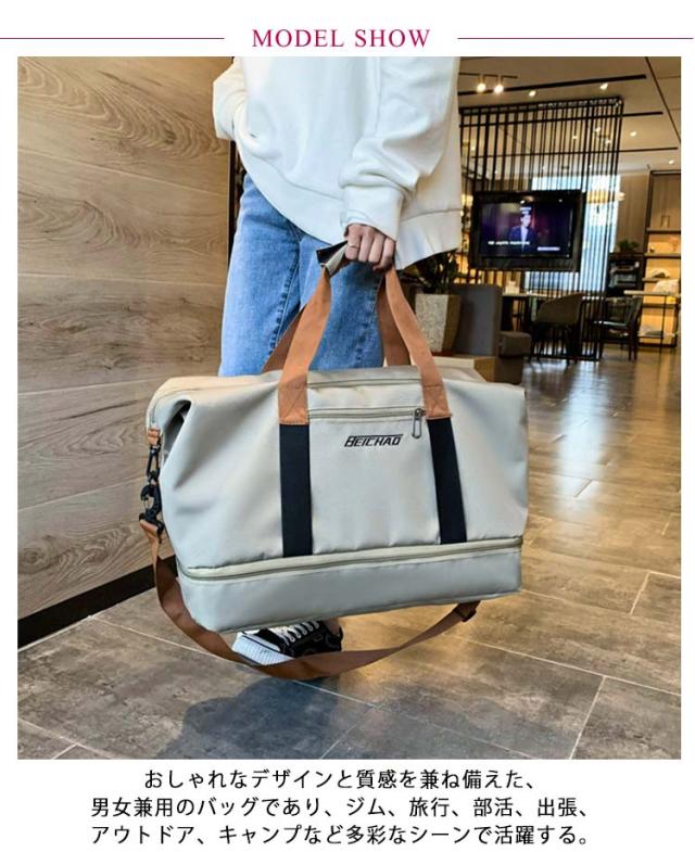| 機能的な高品質オックスフォード生地を採用して、撥水加工もあるので少しも水でも安心! 長さ調整可能なショルダーベルト付きなので、手持ちと肩がけ、斜めがけの3Wayの持ち方法があります。 メインルームは乾湿分離の2層式で、運動や温泉が終わった後、濡れた衣類・タオル・水着などそのまま乾いた物と分離して安心に収納できます。 サイドに靴専用ポケットが付いて、旅行先での履き替え用や、ジム用のシューズを入れて最適です。 おしゃれなデザインと質感を兼ね備えた、男女兼用のバッグであり、ジム、旅行、部活、出張、アウトドア、キャンプなど多彩なシーンで活躍する。 | |