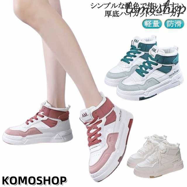 厚底 スニーカー ハイカット レディース 白スニーカー 配色 ハイカットスニーカー 厚底スニーカー ダンスシューズ ヒップホップ 運動靴 カジュアルシューズ 軽量 防滑 通学 通勤 運動 ストリート かっこいい ブルー ピンク ホワイト 白 シンプル 大人 学生 女子