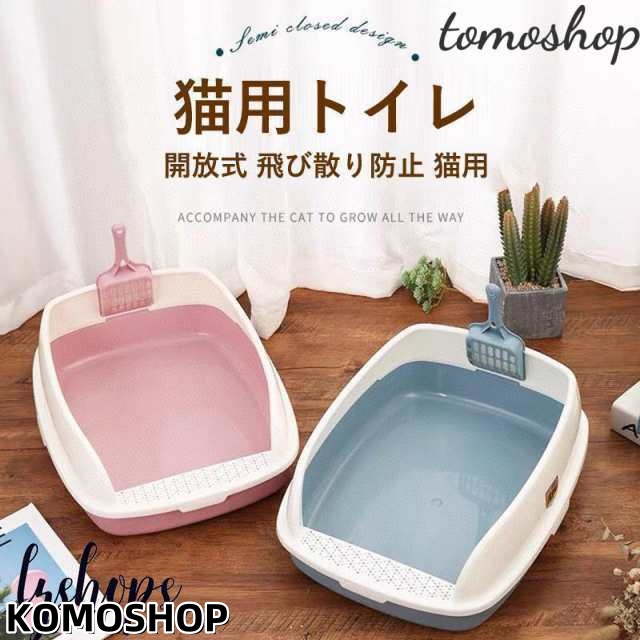 猫トイレ 大きい ネコ 砂 小型 大型 猫 トイレ 四角 におい対策 猫砂 大容量 シンプル 開放式 飛び散り防止 猫用 ネコ用品 スコップ付き