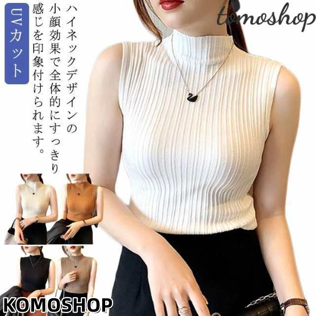 薄手 UVカット ハイネック ノースリーブ タートルネック インナー ハイネックtシャツ タンクトップ レディース カットソー シアートップス レース 綿 春 夏 首 無地 紫外線対策 大きいサイズ 送料無料