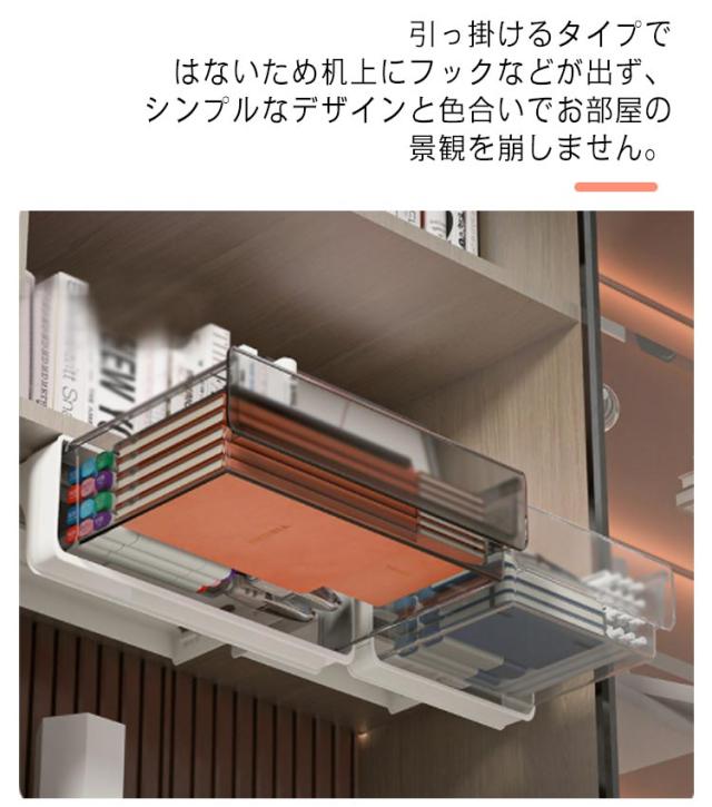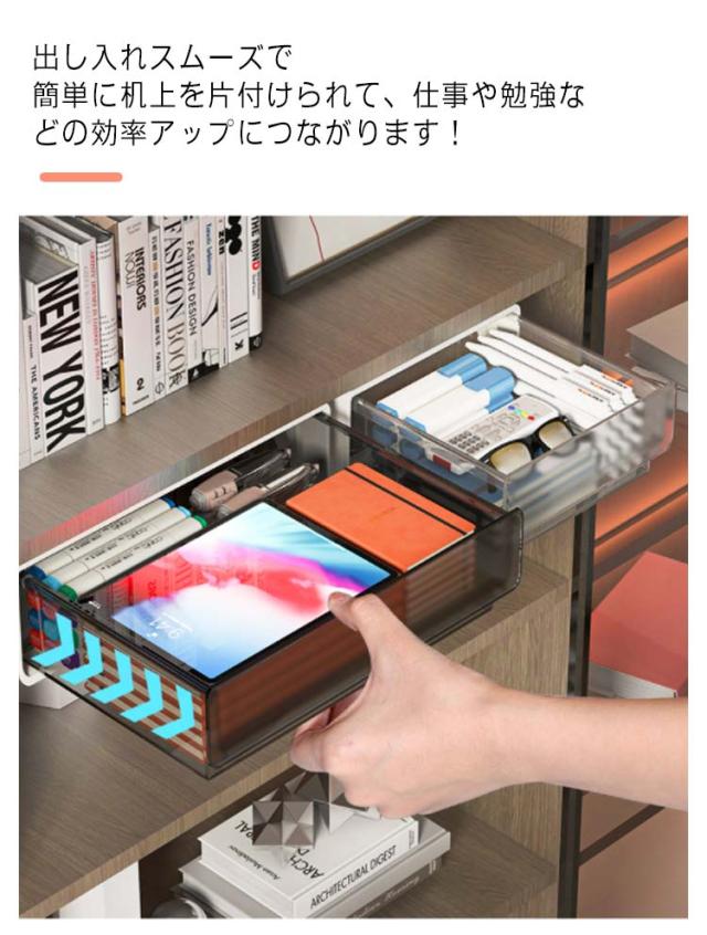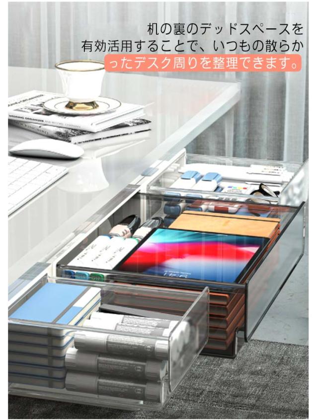 引き出し 後付け デスクした テーブル 卓上収納 デスク 机 収納 DIY トレー 整理 北欧 収納ケース マルチ収納 スライド収納 テーブル下 増設 在宅ワーク 省スペース 装着簡単 丈夫 耐荷重性 テレワーク オフィス 勉強机 テーブル 本棚 ギフト クリア 送料無料