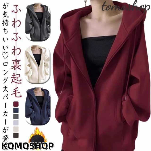 薄手*裏起毛 パーカー レディース ジップアップパーカー ロングパーカー 大きいサイズ 裏起毛パーカー オーバーサイズ 前開き ジップパーカー 前開きパーカー ジップアップ あったか ロング丈 長袖 秋 冬 秋冬 防寒 ワンマイルウェア ルームウェア 部屋着 送料無料