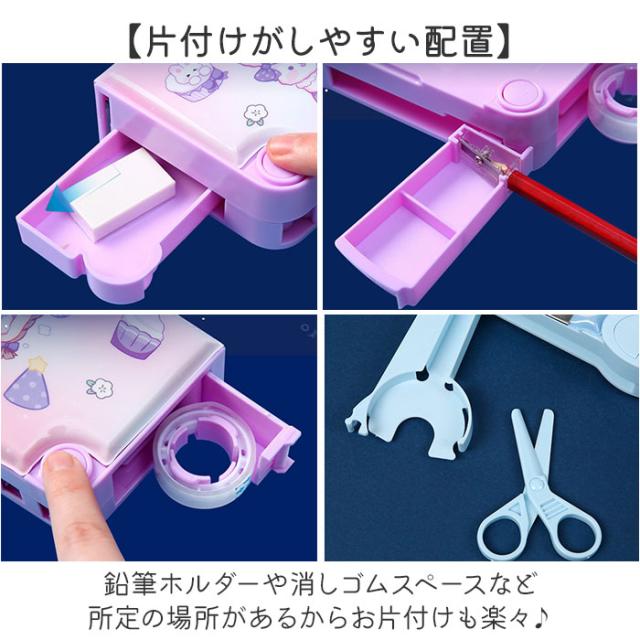筆箱 多機能 小学生 通販 ペンケース 筆入れ ふでいれ ペン入れ 女の子 男の子 片面 鉛筆削り付き ハサミ 箱型 小学校 入学準備 新入学 進級 かわいい 可愛い 文具 文房具 入学祝い