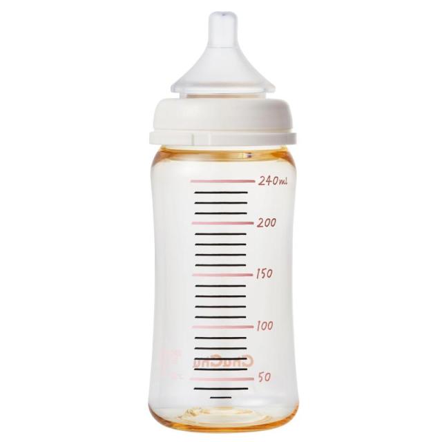 ChuChu(チュチュ) マルチフィット広口タイププラスチック製哺乳びん 240mL ベージュオレンジ 乳首 日本製 新生児 卒乳 全月齢