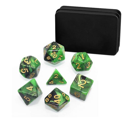 HONESTHING TRPG ダイス 7個 多面体サイコロ 収納用アイアンボックスが付き クトゥルフ神話 、TRPG カードゲーム、 知育、 教育などに適用 (緑・黒)
