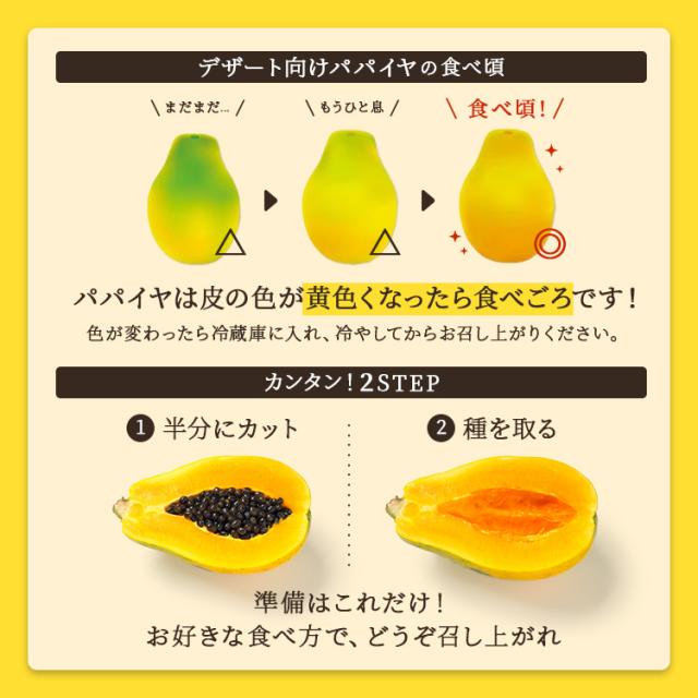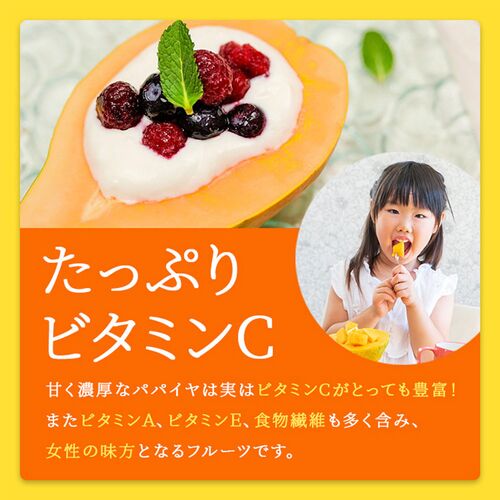南国の日光を浴びたなめらかでねっとりした食感が特徴のトロピカルフルーツ。甘さと酸味の絶妙なバランスがあり、パパイヤ本来の風味が特徴のパパイヤで多くの人に親しまれています。水分が豊富でジューシーな果肉を持っています。一口食べると果汁が口いっぱいに広がります。