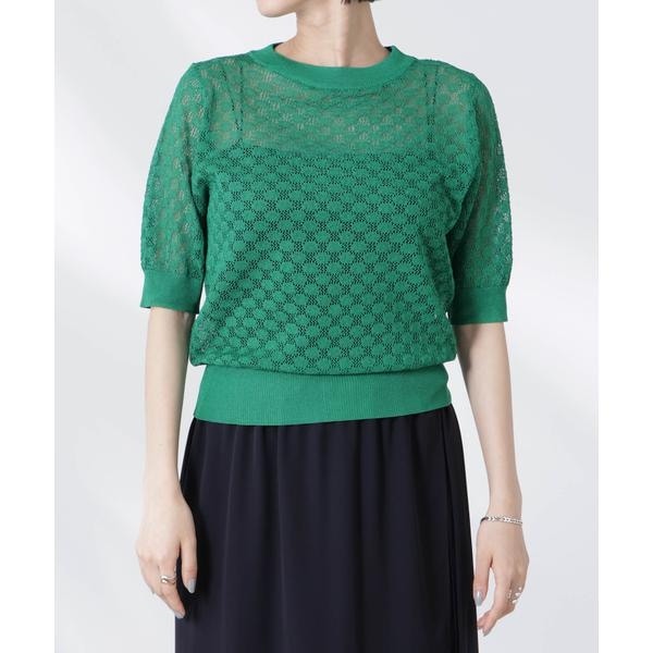 ナノユニバース(NANO universe)/レース柄クルーネック半袖ニット