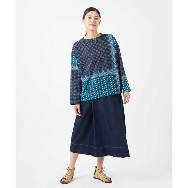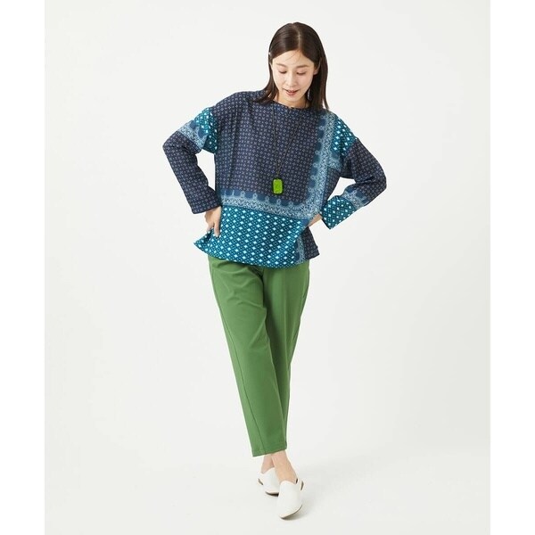 [洗える]バンダナパネルプリントブラウス