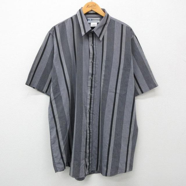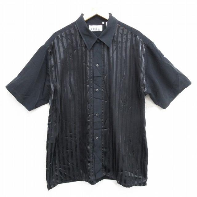 古着 半袖 シャツ メンズ ロング丈 黒 ブラック ストライプ XLサイズ 中古 トップス 中古 古着