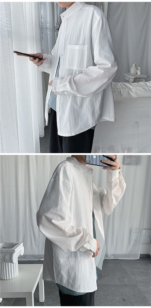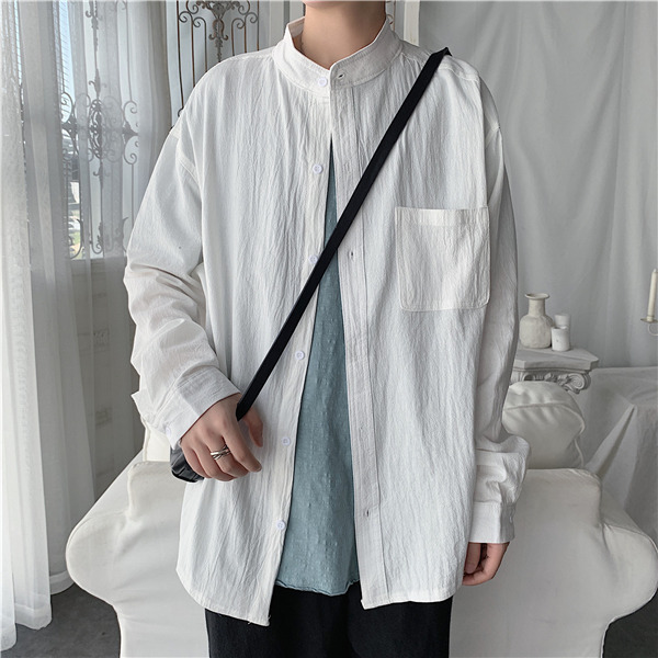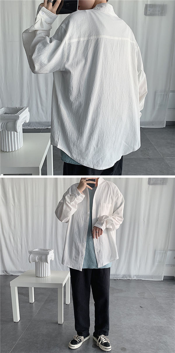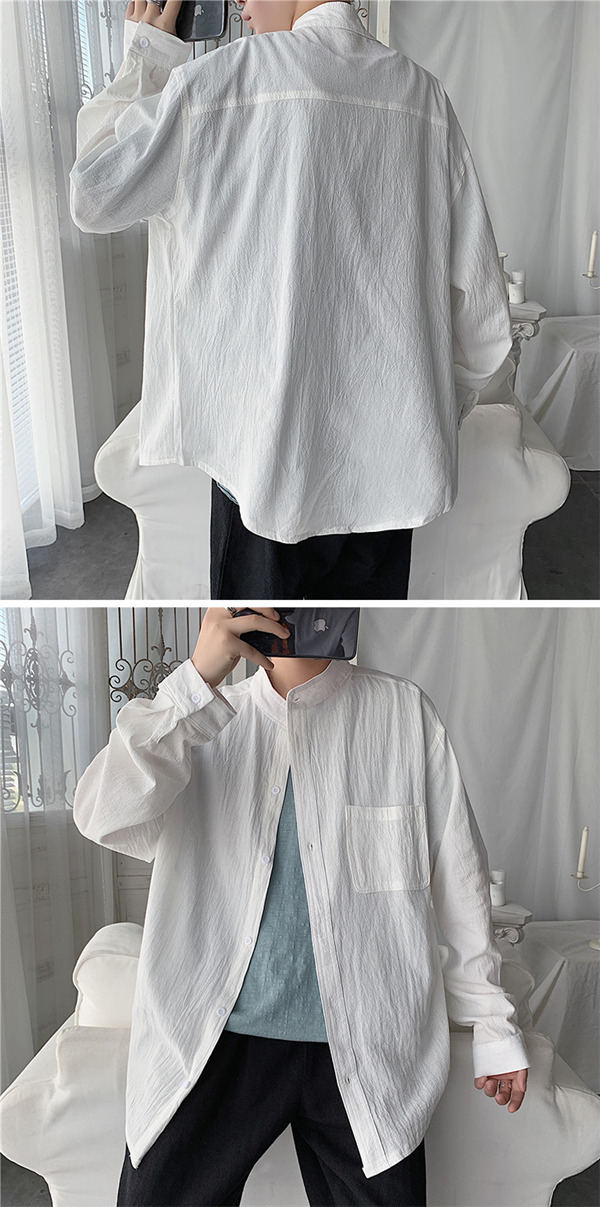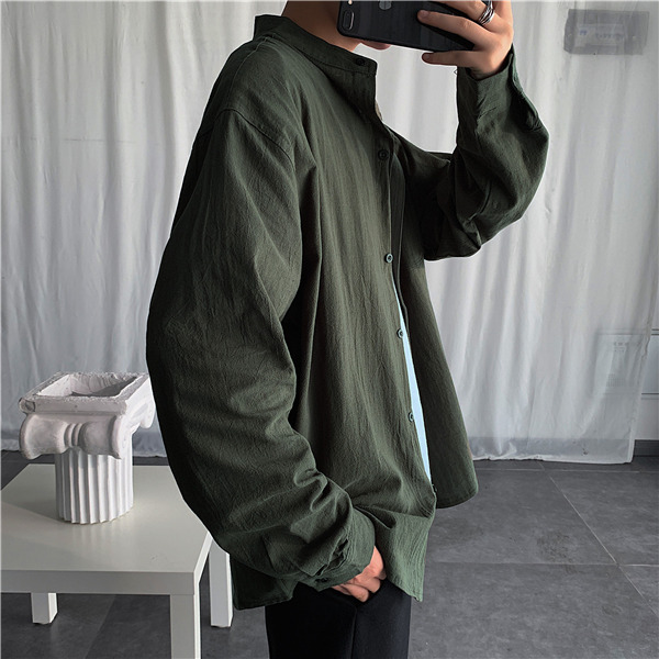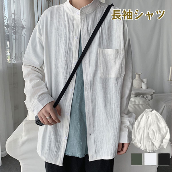 シャツ メンズ 長袖 トップス リネン 立ち襟 カジュアルシャツ 無地 前開き おしゃれ 紳士服 速乾 アウター 秋服 通勤 通学 父の日