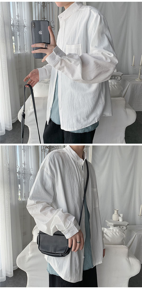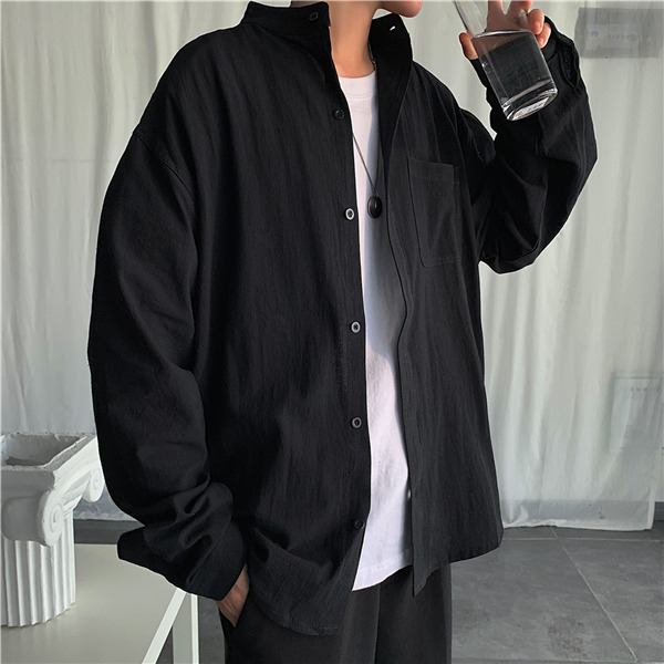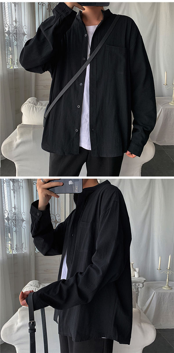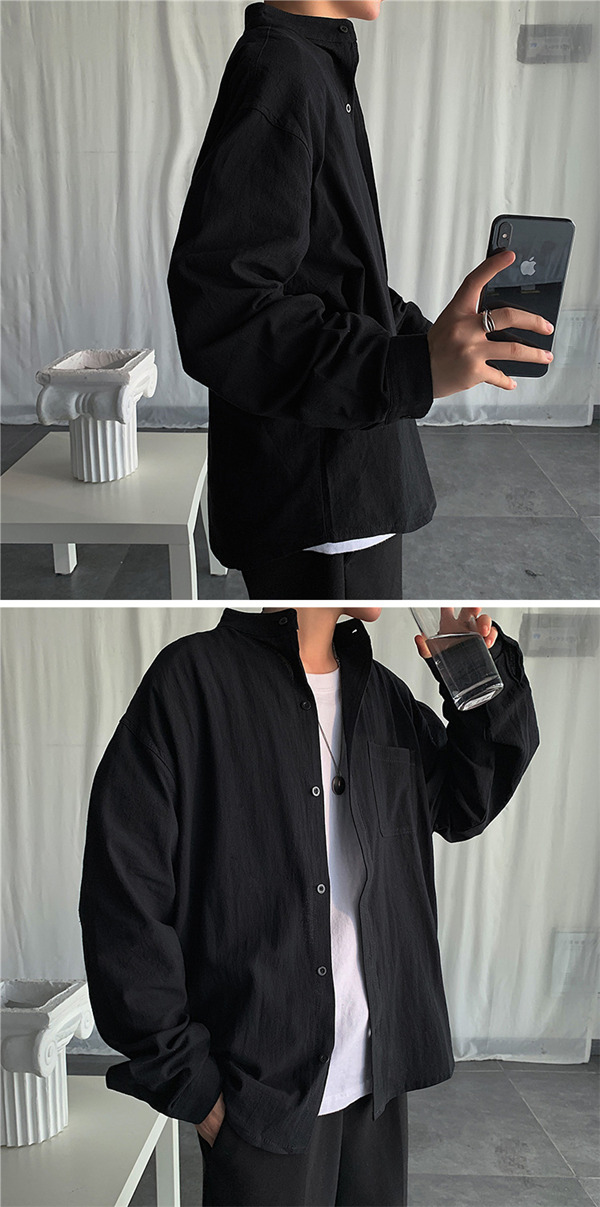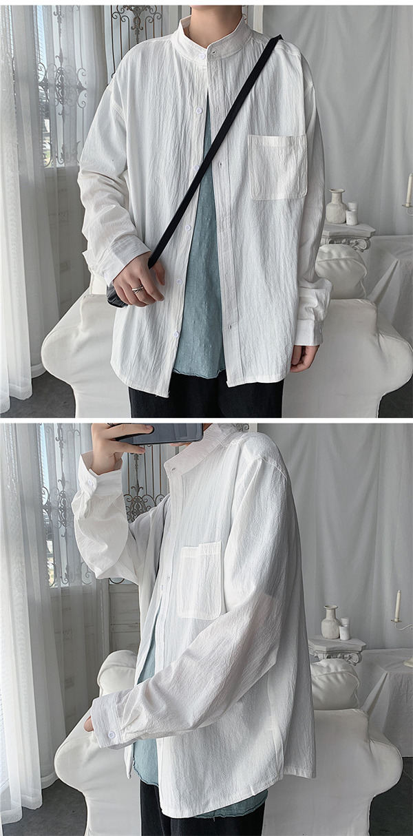 シャツ メンズ 長袖 トップス リネン 立ち襟 カジュアルシャツ 無地 前開き おしゃれ 紳士服 速乾 アウター 秋服 通勤 通学 父の日