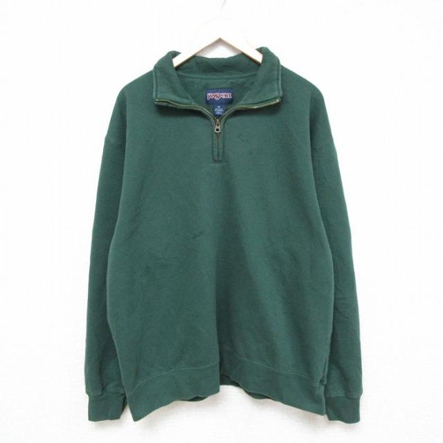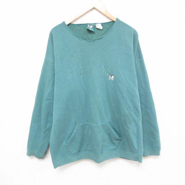 【商品名】 XL★古着 ビッグドッグス BIG DOGS 長袖 ハーフジップ スウェット メンズ 00年代 00s ワンポイントロゴ 表起毛 大きいサイズ 緑