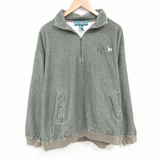古着 ビッグドッグス BIG DOGS 長袖 ハーフジップ スウェット メンズ 00年代 00s ワンポイントロゴ 表起毛 大きいサイズ 緑 グ 中古 古着