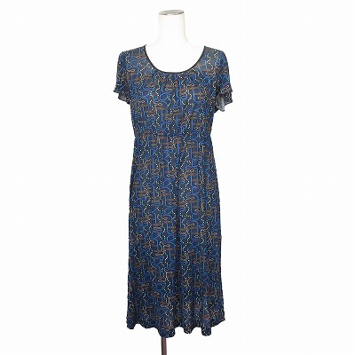 【中古】ププラ PUPULA ワンピース カットソー 総柄 半袖 38 紺 レディース