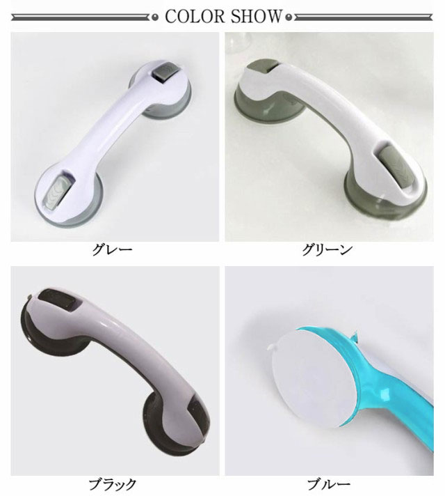 | 壁に押し付けながらレバーを引くだけで真空状態になった吸盤が強力に張り付く補助ハンドル 強力吸盤式でしっかり固定して簡単に壁から引き離せる。 上部レバーを開いてスポッと取り外し可能です。 立ち座りが多いお風呂場でも安全につかまる事ができます。 シンプルでモダンなデザインでどんな場所でも違和感なくマッチします | |