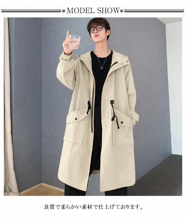 メンズ コート チェスターコート 春秋 オーバーサイズ ゆったり 薄手 マウンテンパーカー モッズコート 無地 防風 トレンチコート スプリングコート ビジネス ジャケット ミリタリー かっこいい フード付き ロング アウター シンプル 送料無料