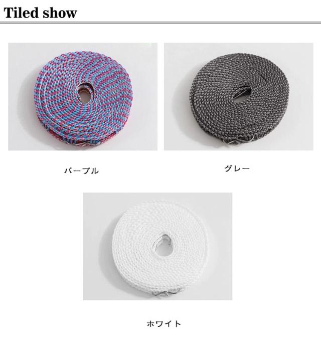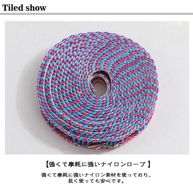 | 【強くて摩耗に強いナイロンロープ 】強くて摩耗に強いナイロン素材を使っており、長く使っても安心です。 【便利な2本セット 】5メートルのロープで、屋内外どこでもさっと乾燥スペースが作れます。家族全員分の衣類も楽々干せます。 【省スペースで便利 】室内でのちょっとした乾燥にも最適です。 【使いやすく持ち運びもラクラク 】吊り下げ穴付きで、ハンガー干しにも最適です。また、軽量でコンパクトに収納できるので、旅行やキャンプでも大活躍します。 | |