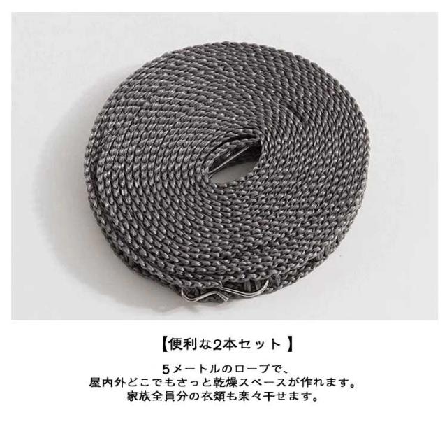 洗濯ロープ 旅行 物干しロープ 約5m アウトドア 洗濯物干し ロープ 防風 ランドリーロープ ナイロンロープ ハンガー掛け 携帯便利 省スペース 軽量 キャンプ 梅雨 室内 屋外 洗濯紐 部屋干し 物干し竿 海外旅行 便利グッズ 送料無料