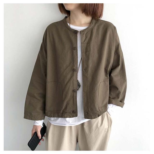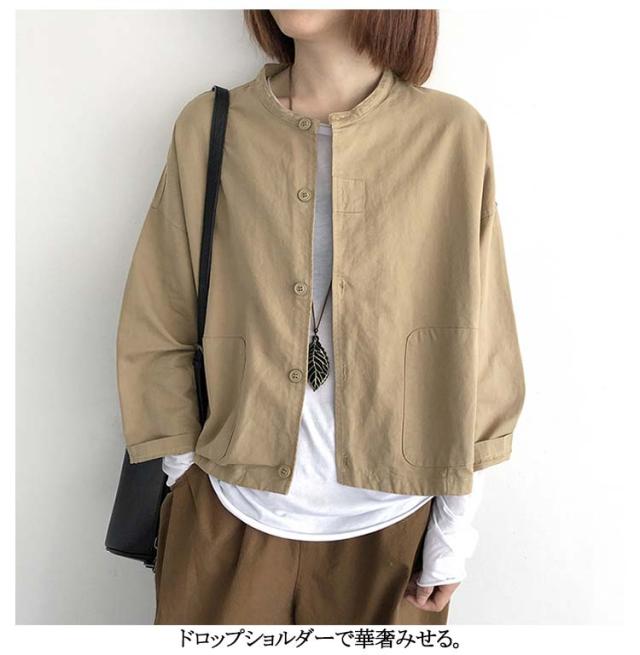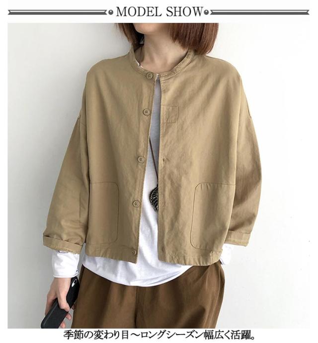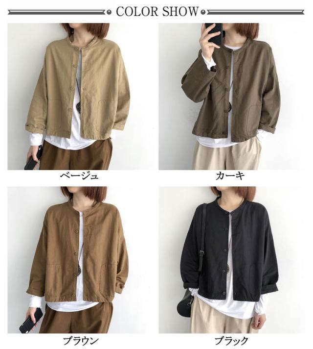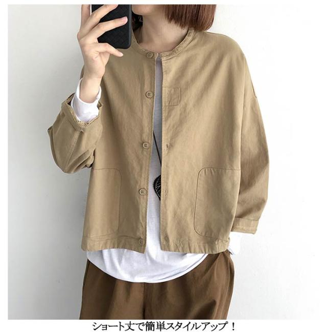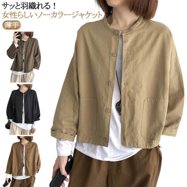 ジャケット レディース 春 アウター ショート丈 羽織もの 春 夏 秋 大人可愛い 無地 長袖 前後差 ゆったり ノーカラージャケット ノーカラー ブルゾン ライトアウター 羽織り 上着 大きいサイズ ドロップショルダー 無地 春 夏 秋 薄手 大人 可愛い 40代 50代
