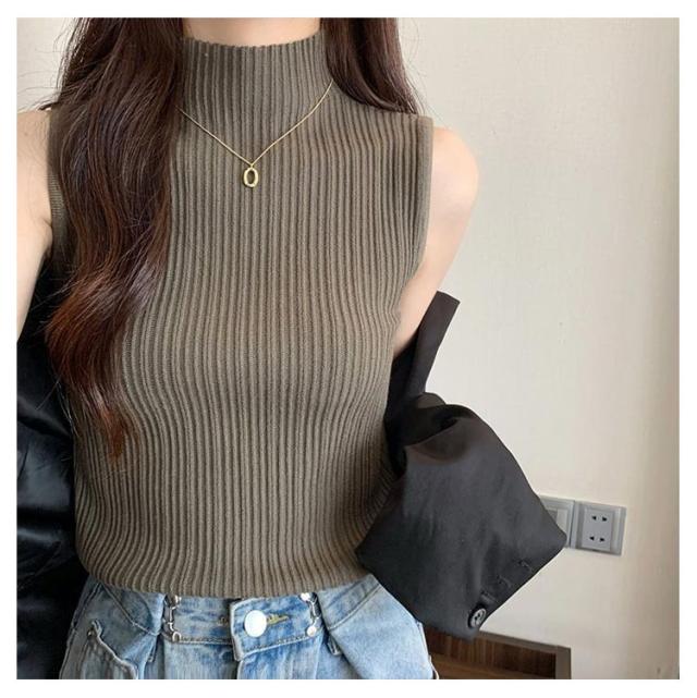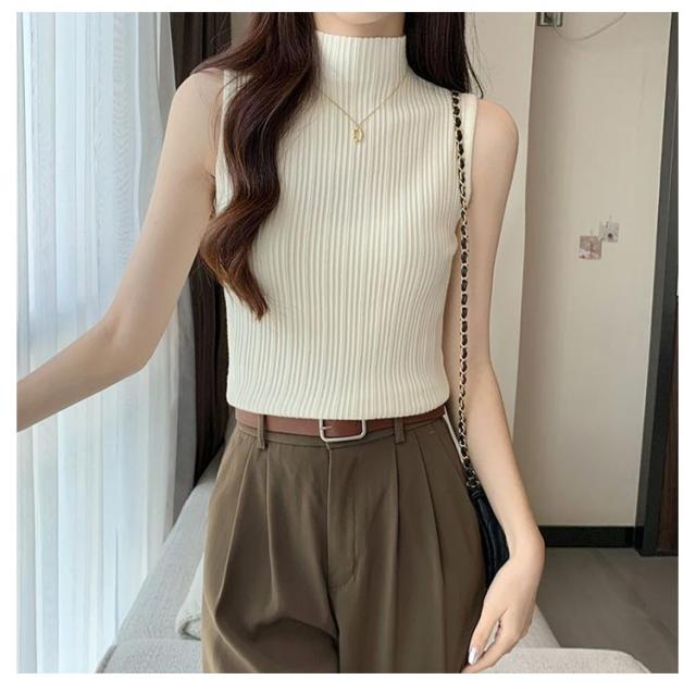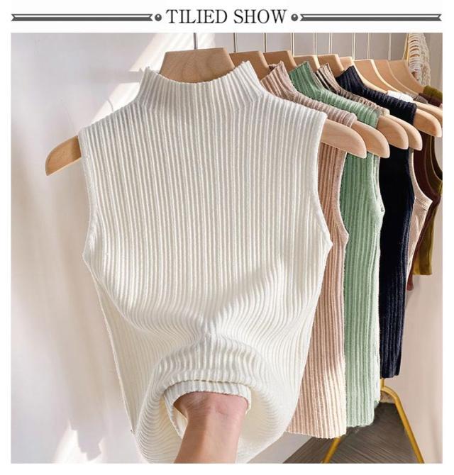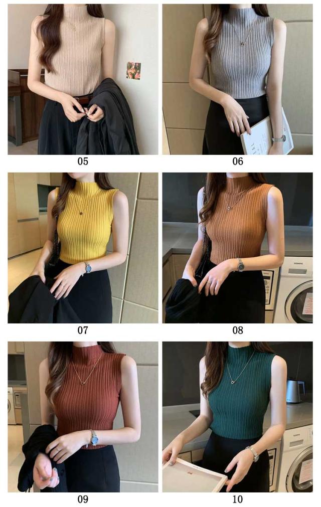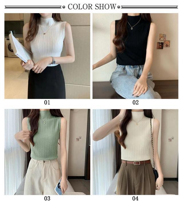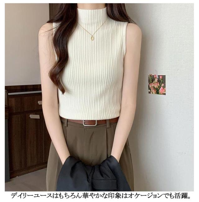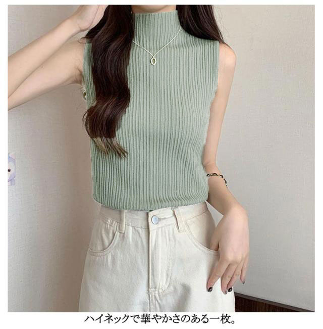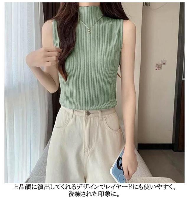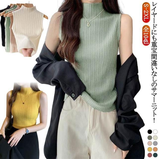 プリーツ タンクトップ レディース ハイネック ノースリーブ Tシャツ ニットトップス ストレッチ トップス ハイネックニット レイヤード シンプル 春 夏 全10色 サマーニット S M L XL 2XL 大きいサイズ 送料無料