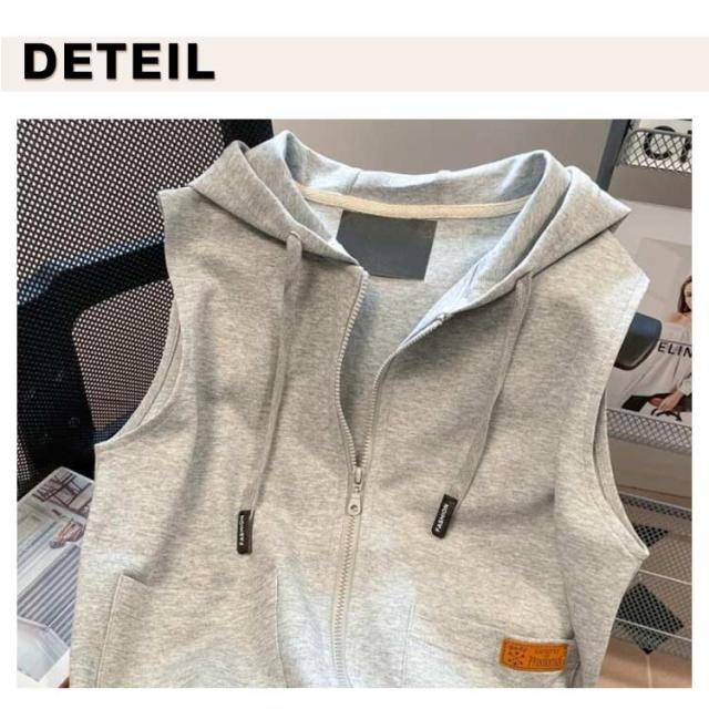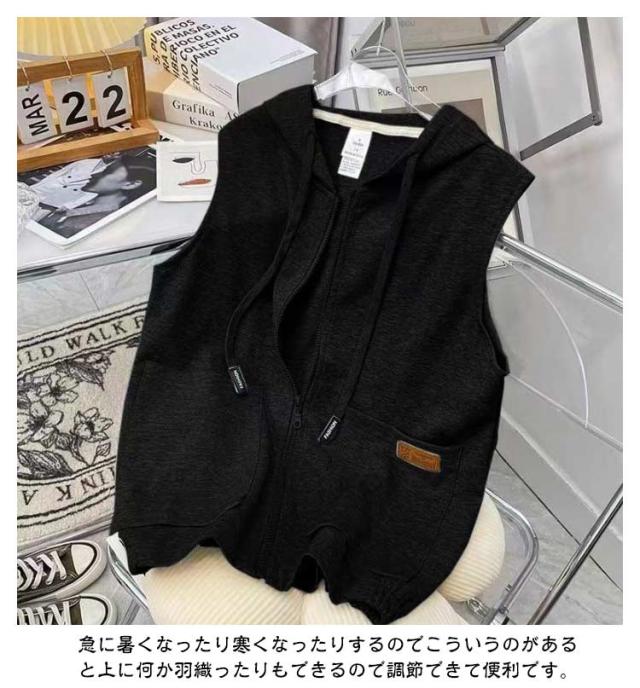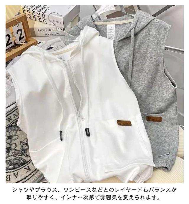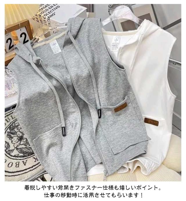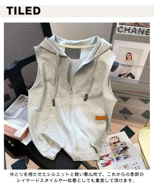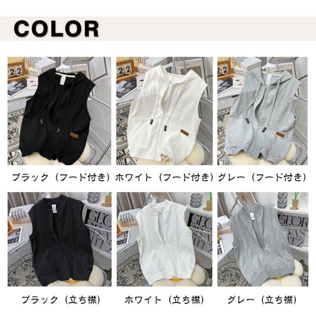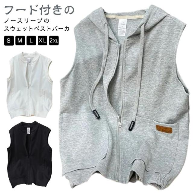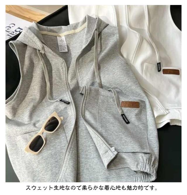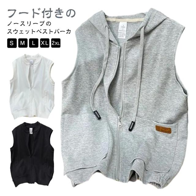 スウェットベスト フード付き 立ち襟 ベスト レディース パーカーベスト 羽織り アウター 春 秋 前開き スウェット ジップアップ 袖なし ノースリーブ トップス 女性 おしゃれ カジュアル 無地 シンプル 重ね着 レイヤード ゆったり 送料無料