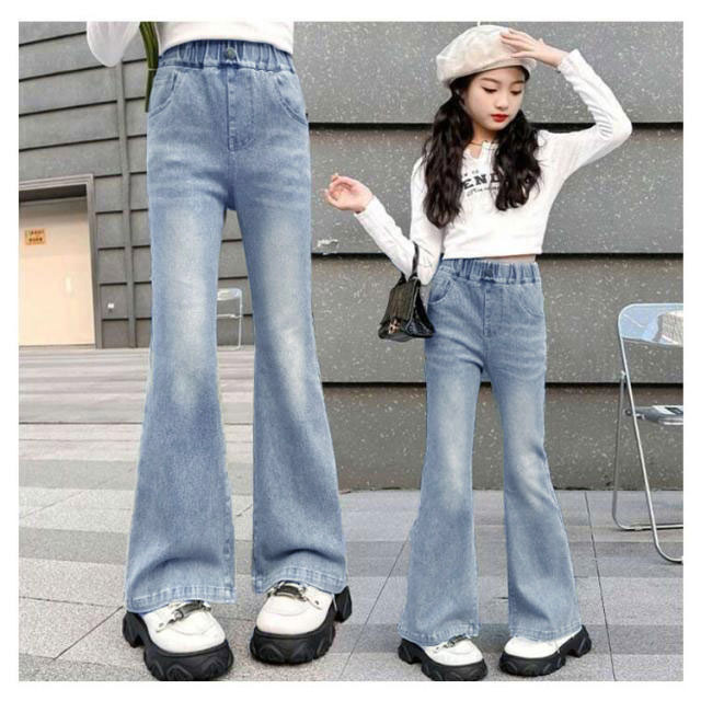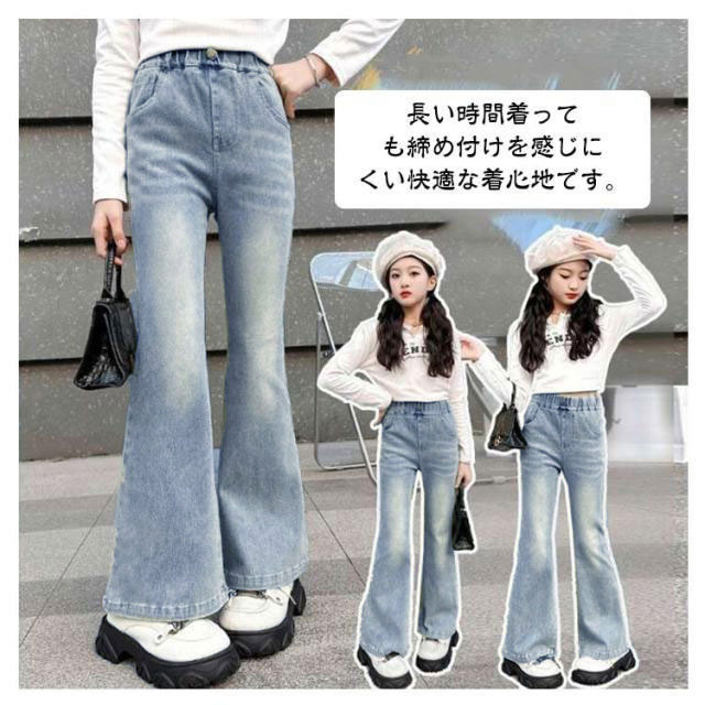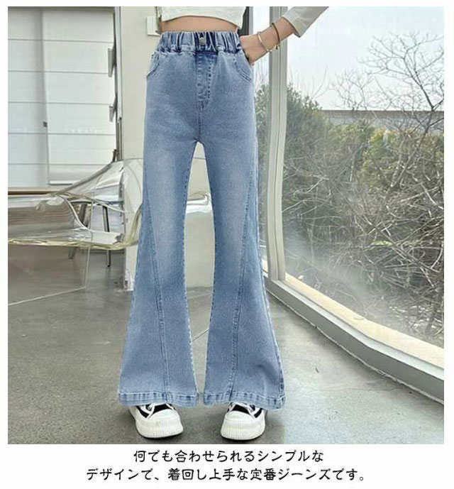 送料無料 子供 デニムパンツ キッズ ジーンズ フレアパンツ ジュニア 服 女の子 ジーパン ウエストゴム ロングパンツ 小学生 中学生 春服 秋服 韓国 ファッション ダンス 衣装 長ズボン ボトムス おしゃれ ブーツカット 120 130 140 150 160 170cm