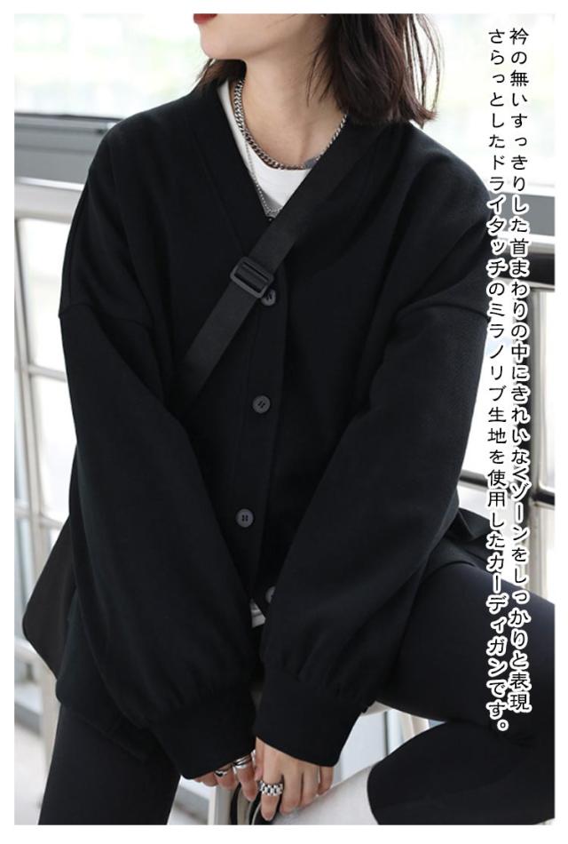 | カーディガンのようにサラッと羽織るだけでおしゃれなシルエットをキープ 衿の無いすっきりした首まわりの中にきれいなVゾーンをしっかりと表現 さらっとしたドライタッチのミラノリブ生地を使用したカーディガンです。 ポリエステルなのでシワにもなりにくく、ご自宅でお手入れも可能なのでデイリーユースにぴったりです。 気軽に羽織ることができ、少し肌寒い春先のお出かけにも活躍する一着。 | |