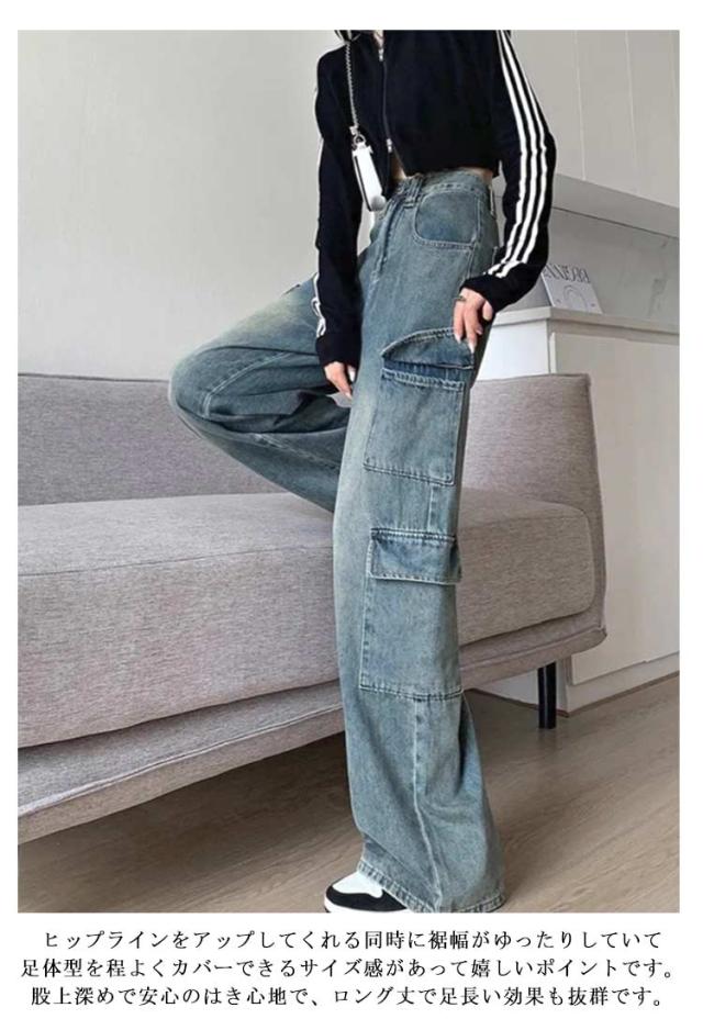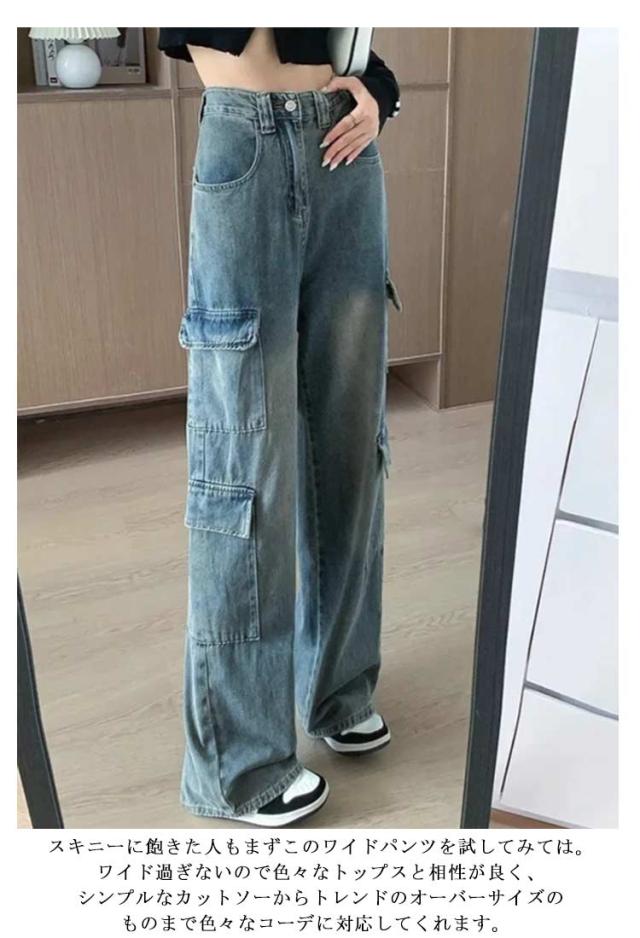 デニム ワイドパンツ デニム レディース ロングパンツ 多ポケット ダンスパンツ ダンス衣装 ゆったり 大きいサイズ かっこいい ヒップホップ XS ハイウエスト 普段着 カジュアル 通勤 体型カバー カーゴパンツ S M L XL